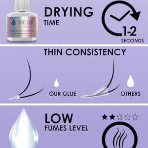 - Low fumes and fast dry time, designed for highly skilled lash artists