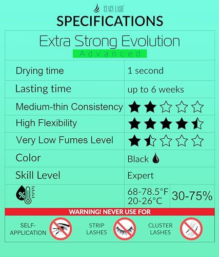 Elevate your eyelash extension game with Stacy Lash’s Extra Strong Evolution Advanced Eyelash Extension Glue. Designed for professional use only, this black adhesive offers a 1-second drying time and 6 weeks retention, ensuring long-lasting, stunning results.