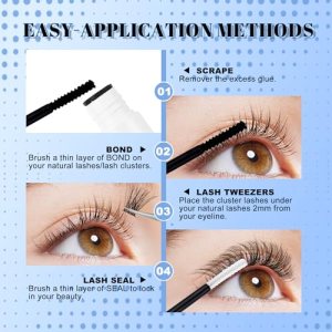 To apply, use the precise applicator to brush the adhesive onto the root of your eyelashes. Follow the 3 simple steps for a flawless lash look.