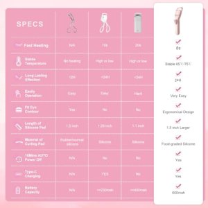 HEBECA Heated Eyelash Curler Professional Pink with Innovative Heating Silicone, 600mAh Rechargeable Battery