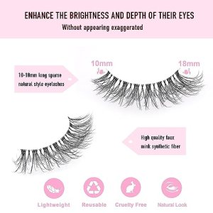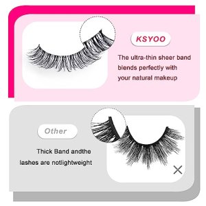 Enhance your natural beauty with KSYOO D Curl 8-15mm Cat Eye Lashes. These faux mink lashes provide a natural look with a touch of volume and drama. The clear band false eyelashes seamlessly blend with your own natural lashes, giving you a subtle boost in length and volume. The wispy and cat eye designs add a fluffy and dramatic effect, ideal for achieving a natural yet dazzling look.