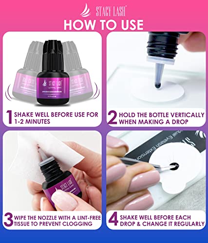 Elevate your eyelash game with Stacy Lash Lightning Speed Eyelash Extensions Glue. This evolutionary adhesive offers an incredibly fast drying time of 0.3 seconds, making it perfect for highly skilled eyelash technicians looking to boost the speed of their lash appointments. The innovative latex-free formula minimizes the chances of irritation, providing a super long-lasting hold with the lowest level of fumes.