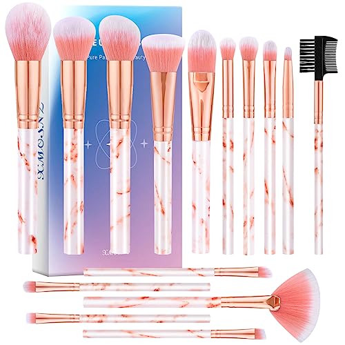Enhance your makeup routine with the XMOSNZ 15pcs Marble Makeup Brush Set. The fashionable white marble pattern handle is not only stylish but also durable, providing a comfortable grip for precise application.