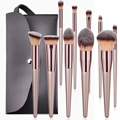 The set includes 10 brushes of various sizes for face and eye makeup application. The champagne gold conical handles add a touch of luxury to your beauty routine.