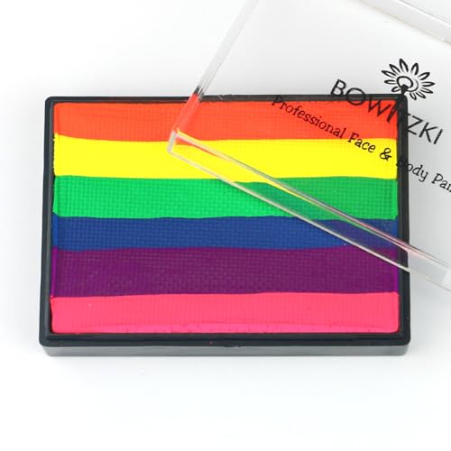 Bowitzki Neon Rainbow Split Cake includes Neon Magenta, Neon Purple, Neon Blue, Neon Green, Neon Yellow, and Neon Orange. Ensure to store in a clean and dry state with the lid on for long-lasting use.