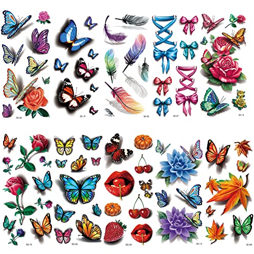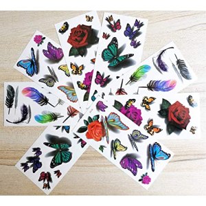 Add a touch of charm to your look with these 10 sheets of 3D butterfly temporary tattoos. Each sheet measures 9cm*19cm and features a delightful assortment of designs, including roses, butterflies, and feathers. These waterproof tattoos are guaranteed to last 3-5 days, making them perfect for beach outings, festival parties, and more.