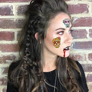 Enhance your Halloween look with the Day of the Dead Sugar Skull Tattoos. This set includes 100 vibrant and detailed tattoos in 20 different designs, featuring a variety of colors and patterns to celebrate life and add an exciting touch to your outfits.