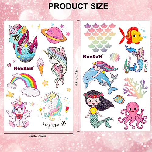 Add a touch of magic to any occasion with Konsait’s Glitter Temporary Tattoos. These 120+PCS sparkly designs include unicorns, butterflies, mermaids, and fairies. Made from non-allergenic, safe materials, these tattoos are durable, waterproof, and can last up to 3-5 days. They are perfect for birthday parties, slumber parties, and other seasonal events. The easy application process allows kids to enjoy a touch of glamour in just 10-20 seconds using water, and removal is simple with rubbing alcohol or body oil.