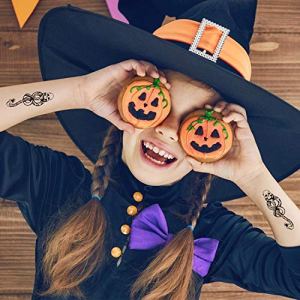 Product Description: Elevate your Halloween cosplay with these 20 sheets of Death Eater temporary tattoos. The realistic dark mark, snake, and skull designs are perfect for adults and kids alike.