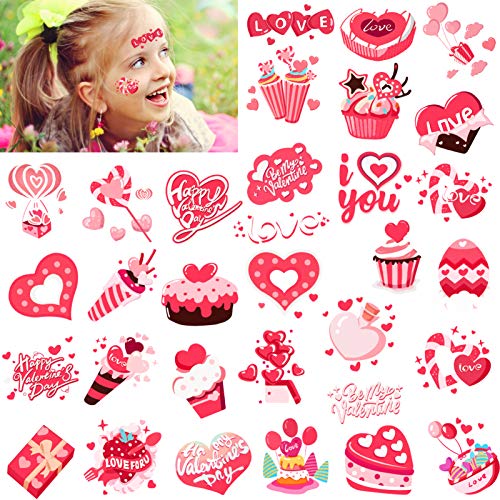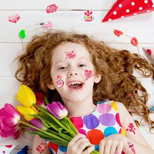 Add more fun and excitement to your Valentine’s Day party with Konsait 64pcs Valentines Temporary Tattoos. These heart-themed temporary tattoos come in 32 different designs, featuring an assortment of pink and red hearts, love-themed phrases, and adorable Valentine’s Day elements such as ice cream, cake, and more.