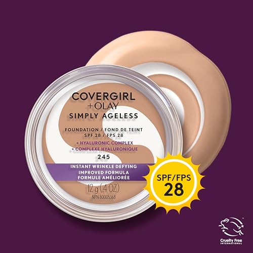 Discover the secret to younger-looking skin with Covergirl Simply Ageless Instant Wrinkle-Defying Foundation. This innovative formula is designed to diminish the look of fine lines and wrinkles, providing a more youthful and radiant glow. Infused with a hydrating blend of hyaluronic complex and vitamin C, it promotes healthier-looking skin while also offering SPF 28 protection, making it safe for use in the sun.
