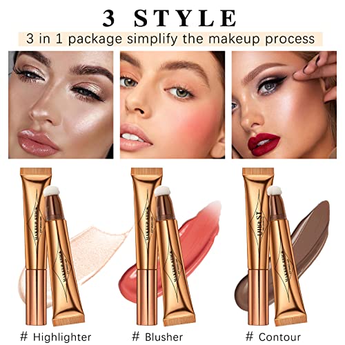 Enhance your makeup routine with the NewBang 3Pcs Blush Beauty Wand Contour Highlighter Bronze Stick Set. This set includes a blush, highlighter, and contour pen, offering a complete solution for creating a three-dimensional face. The creamy texture and matte finish provide a smooth and advanced sense, while the special cushion applicator design simplifies the application process.