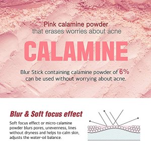 PINK CALAMINE POWDER erases worries about acne. Calamine powder used for acne treatment helps to calm skin, sebum control, and reduce inflammation. Vue de pulang Blur Stick containing calamine powder of 6% can be used without worrying about acne.