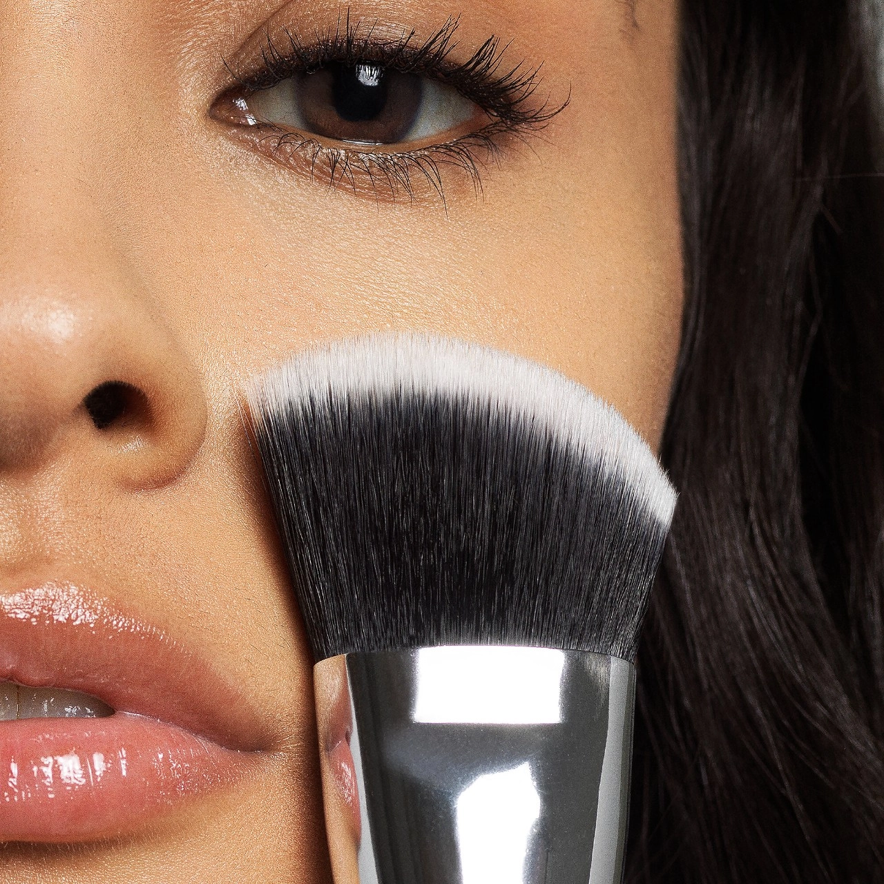 The cruelty-free and vegan formula of this brush aligns with your values, making it a guilt-free addition to your makeup routine. The short and ergonomic aluminum handle offers precise control and pressure, ensuring a flawless application with ease.