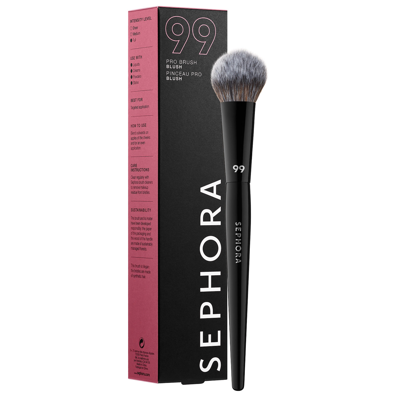 Achieve precise and flawless cheek application with the SEPHORA COLLECTION PRO Blush Brush #99. This innovative spade-like brush head allows for targeted application and seamless blending, making it the perfect tool for blush, contour, and powder application. The soft, slightly dense bristles are ideal for cream blush, ensuring a smooth and natural finish.