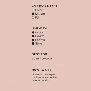 To achieve a natural look, start by buffing on foundation in light, circular motions. Begin in the center of the face and work your way outwards. For the most natural finish, build coverage in layers, ensuring not to overload the brush. This brush is also perfect for stick foundations.