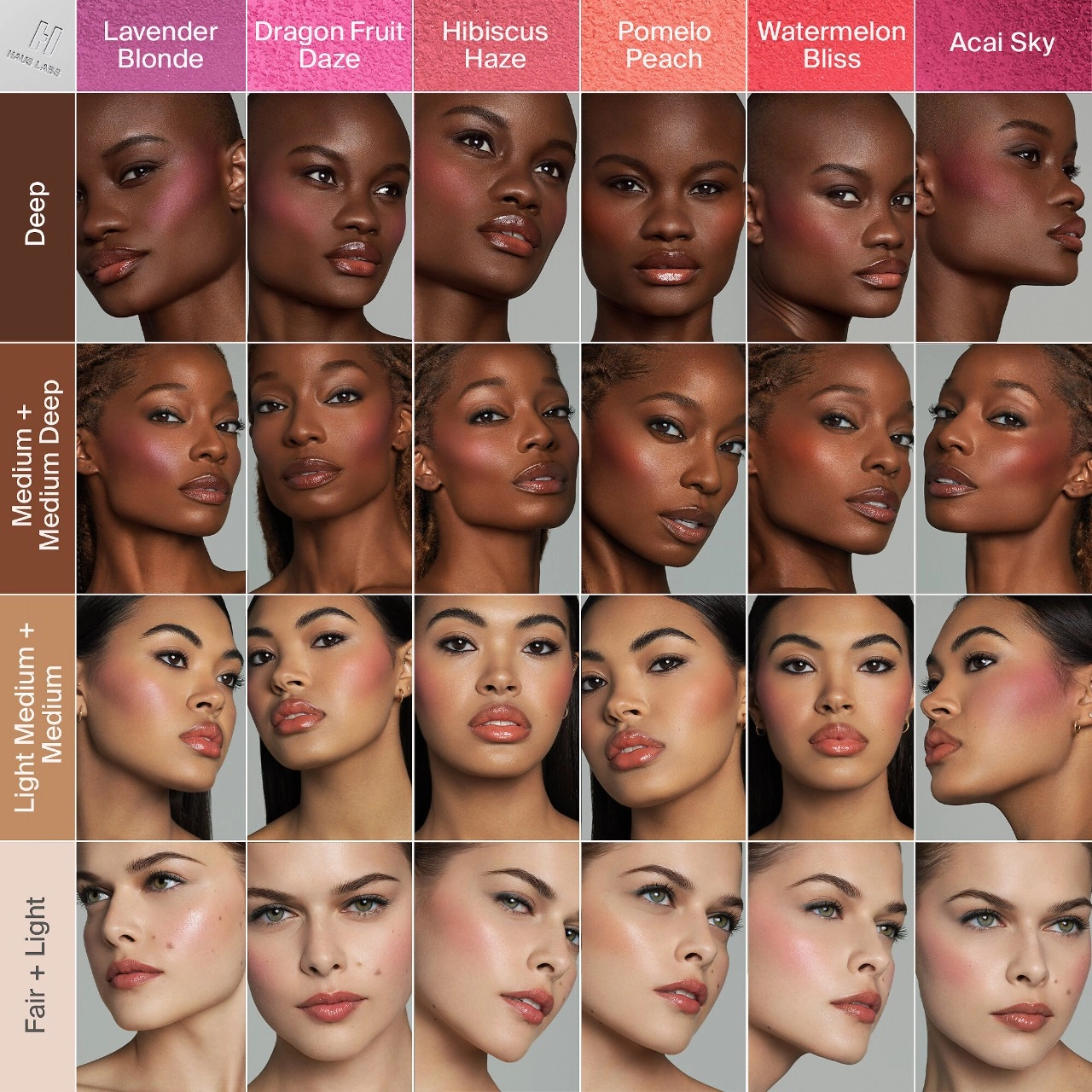 Unveil your allure with HAUS LABS BY LADY GAGA Color Fuse Talc-Free Powder Blush with Fermented Arnica. Choose from Lavender Blonde, Hibiscus Haze, Acai Sky, Dragon Fruit Daze, Pomelo Peach, or Watermelon w/n—each shade a testament to beauty and self-care.