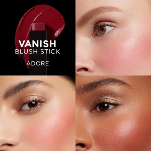 – Apply Vanish Blush Stick to the contours and apples of the cheeks. Blend upward toward the temples with fingertips or brush.