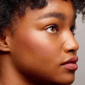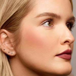 - Lightly “kiss” your brush into the blush and tap off any excess.