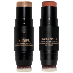 Nudies Matte Blush & Bronze (Sunkissed): This dual-purpose stick works wonders as it warms and sculpts the face, adds a touch of color to eyelids, and imparts a natural tint to lips.