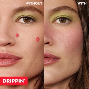 2. Use your fingers or a makeup brush to gently pat and blend the blush into your skin for a juicy glow finish.