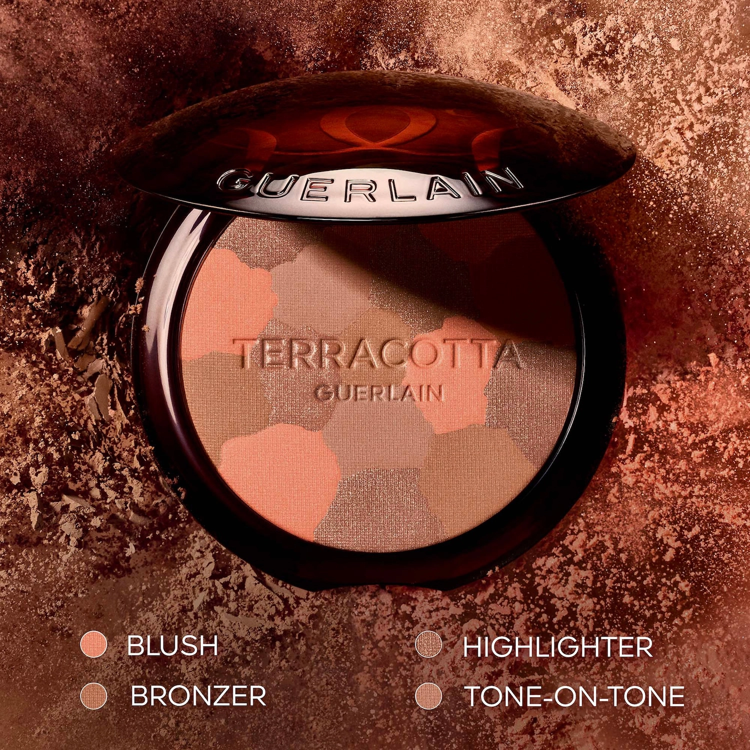 Experience the luxurious blend of blush, bronzer, and highlight tones with GUERLAIN Terracotta Light Healthy Glow Bronzer. Let your skin radiate with a natural healthy glow.