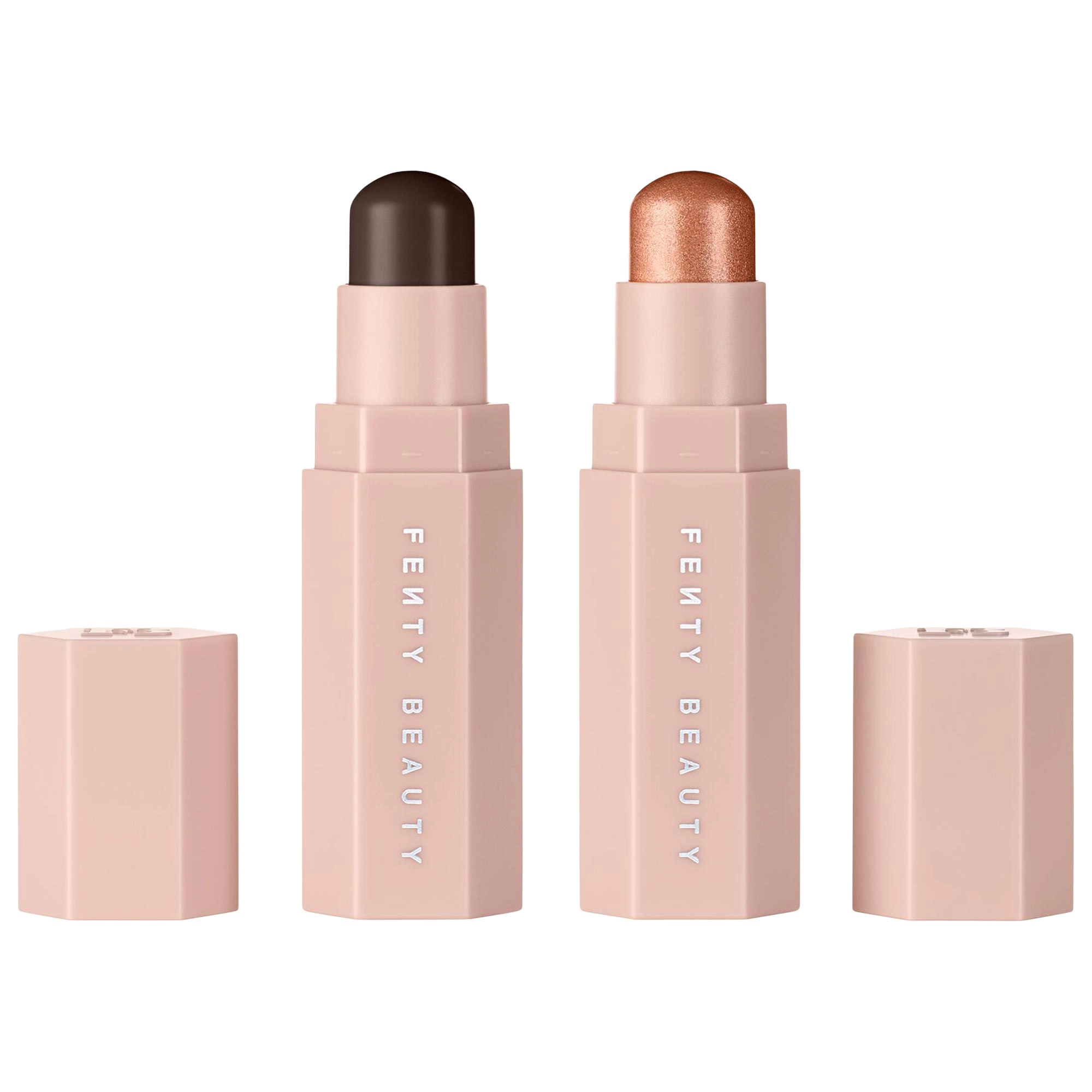 Enhance your natural beauty with the Fenty Beauty by Rihanna Match Stix Duo Contour + Highlighter Set. This limited edition set features a matte contour stick in the shade Espresso 05 and a shimmer highlighter stick in the shade Sinamon 03. The duo is expertly paired to define and create dimension for all skin tones.