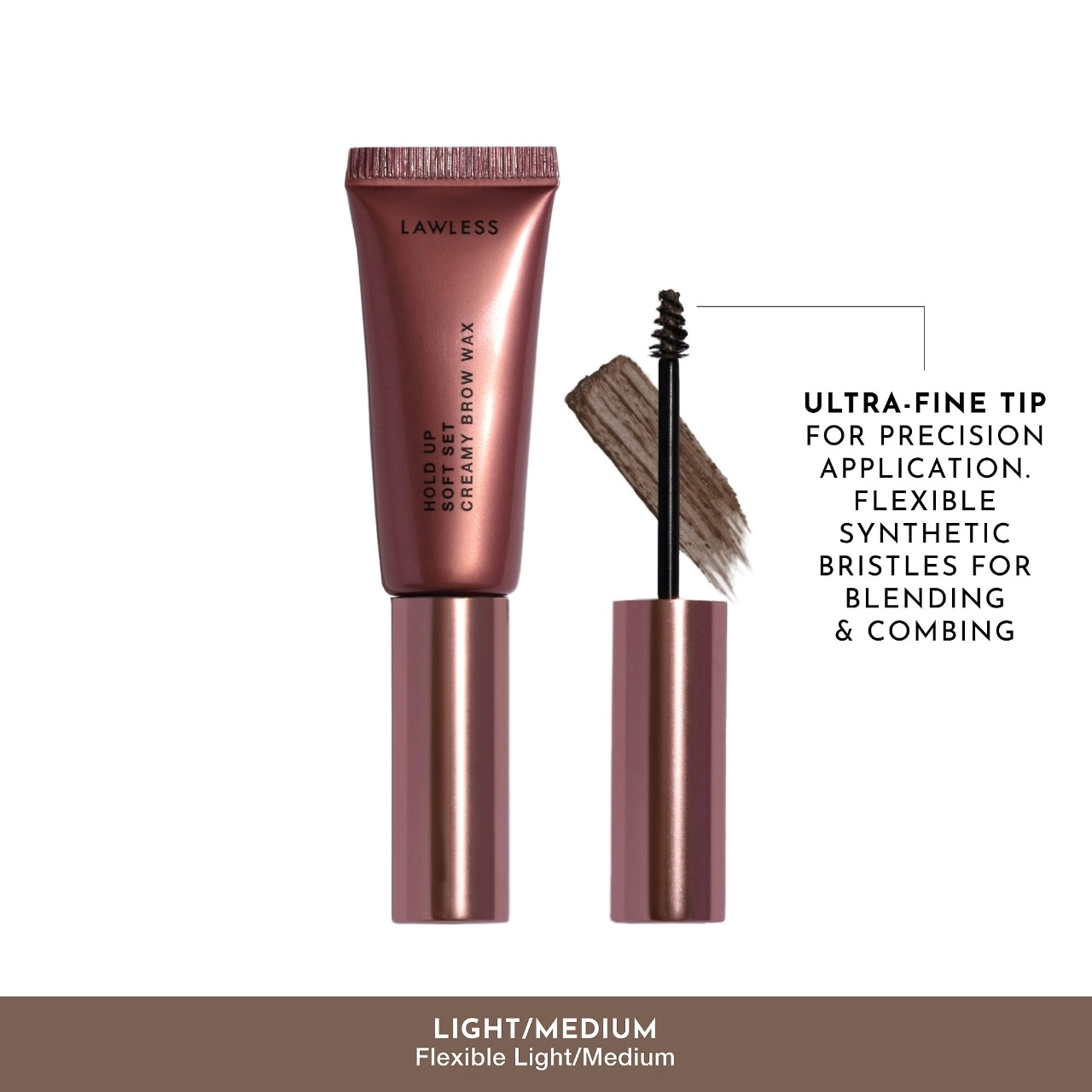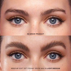 Get fuller-looking brows that last all day with LAWLESS Hold Up Soft Set Creamy Eyebrow Wax. This clean, vegan, and cruelty-free formula delivers a strong but flexible hold and a hint of tint. Enriched with nourishing Argan Oil, it conditions and enhances your brows for a visibly healthy and fluffy look. The creamy texture and soft fiber brush ensure precise application without any residue or flaking. This award-winning product is a must-have for creating visibly fluffy or naturally defined brows.