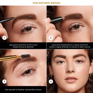 – In a back-and-forth motion, use the tinted balm to apply on brows to add volume and hold.