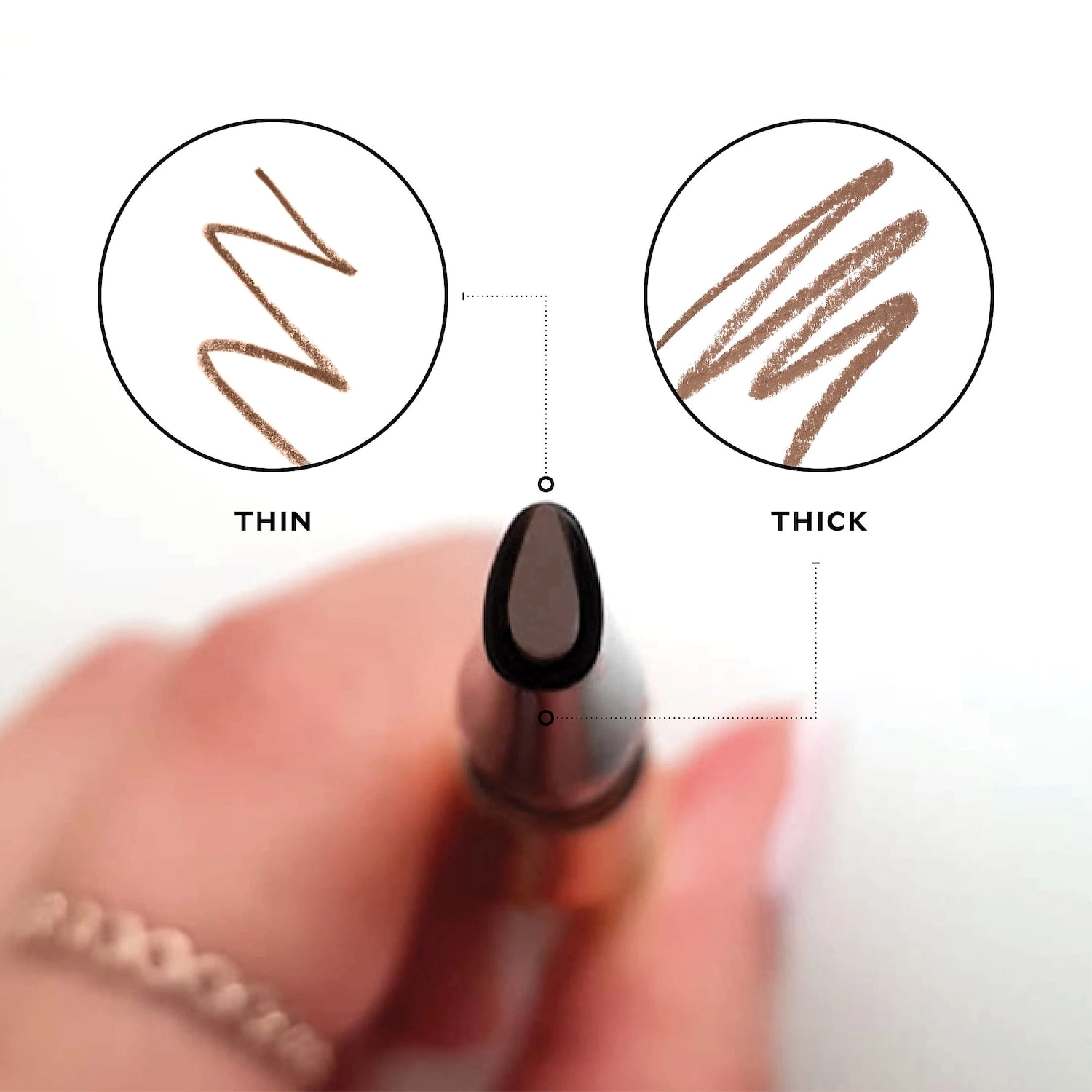 - Teardrop Pencil: Use the pencil end to fill in and shape brows as desired.