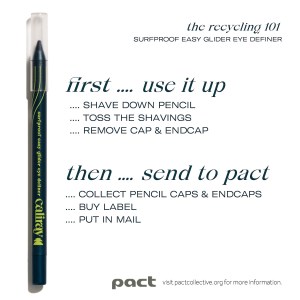 To use the Caliray Surfproof Easy Glider Eye Definer Waterproof Eyeliner Pencil, simply draw a sharp and precise thick or thin line on your upper and lower lashes, or on the waterline. If you prefer a smoky look, you can smudge the liner. The pencil is wrapped in a bio-based (sugarcane) barrel and the carton is made from 100 percent post-consumer recycled paper, so you can feel good about recycling them.