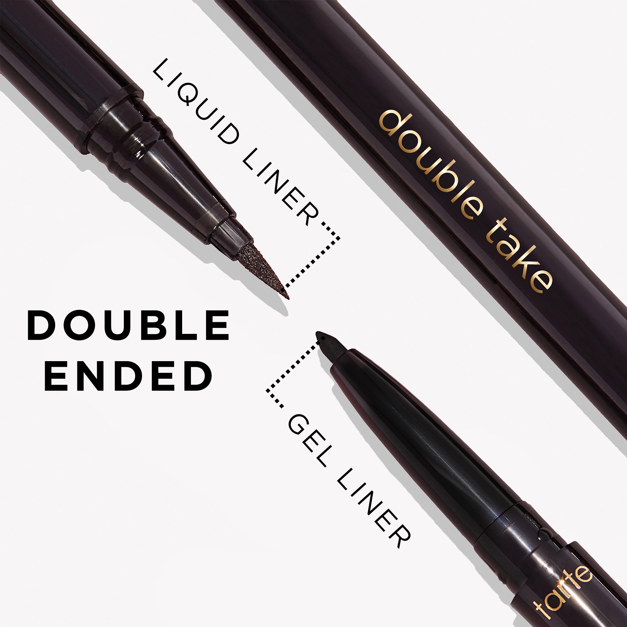 Create a stunning eye look with the Tarte Tarteist™ Double Take Eyeliner. This dual-ended eyeliner features a waterproof liquid liner and a pencil liner, all in one convenient tool. The long-wearing formula is vegan and waterproof, ensuring your eye look stays flawless all day. The black mini size is perfect for travel.