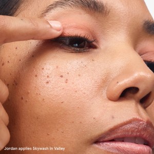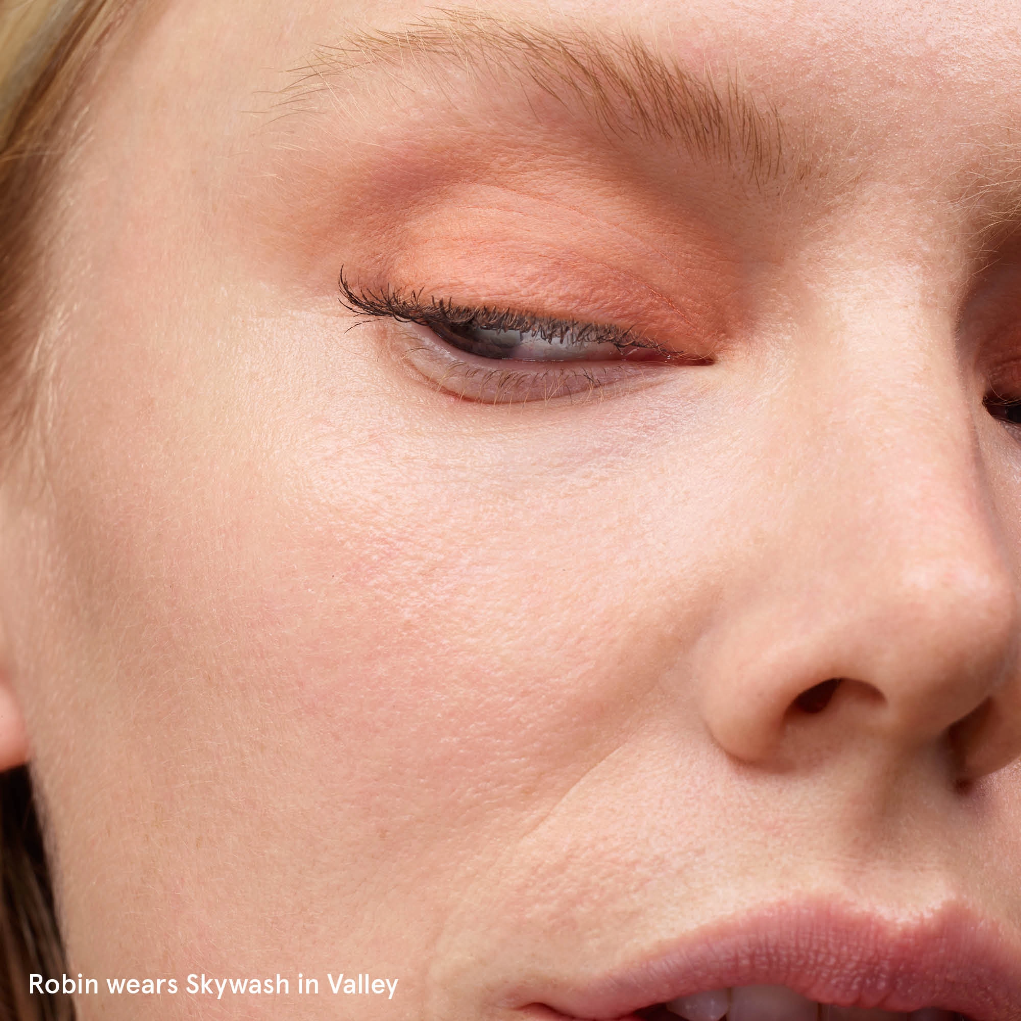 Transform your eyes with Glossier Skywash Liquid-to-Powder Sheer Matte Eyeshadow Tint in Valley – Warm Peach. This buildable eyeshadow delivers a soft, diffused color that lasts up to 12 hours without smudging. The liquid formula sets to a powder-matte finish, giving you a seamless and natural look.