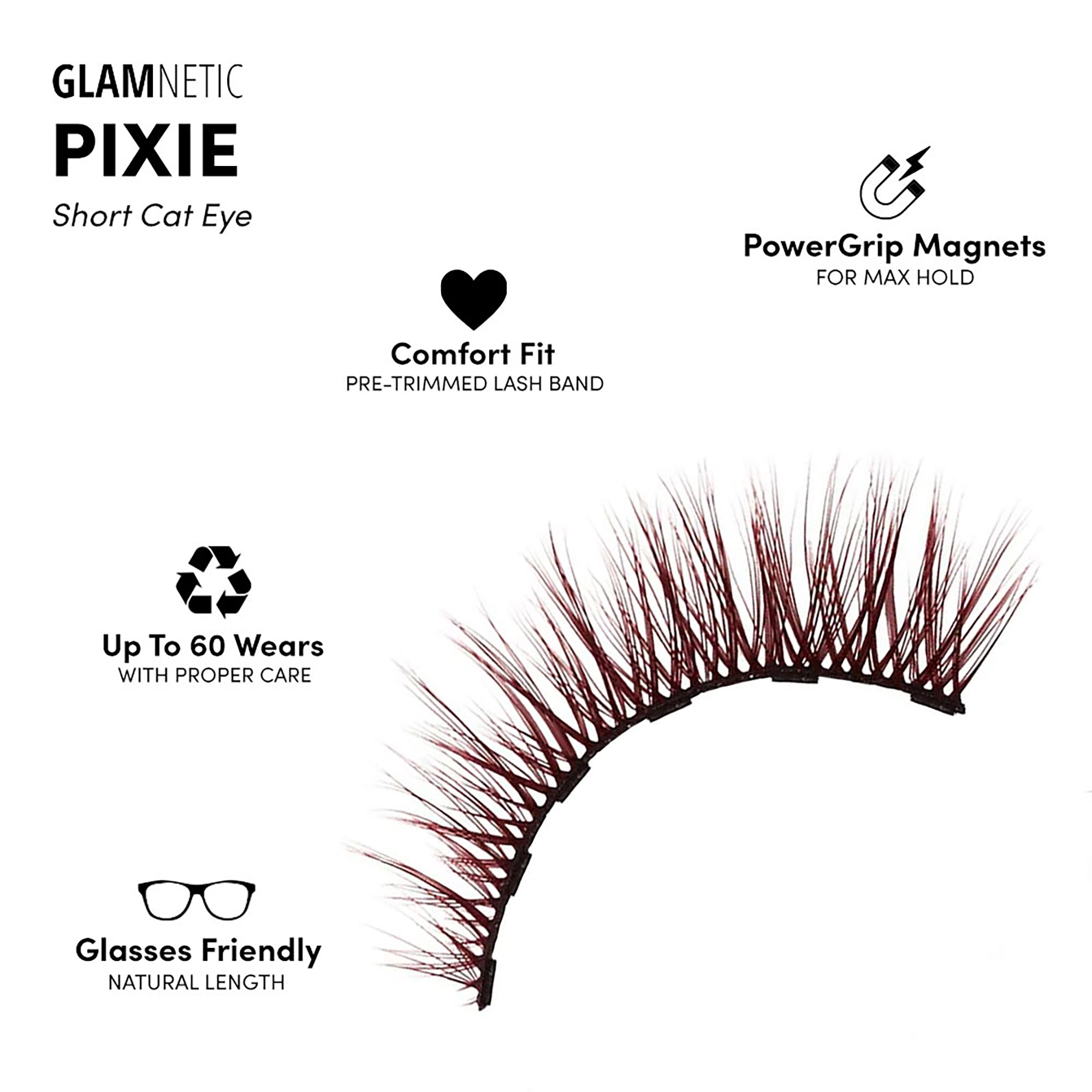 Enhance your natural beauty with Glamnetic Magnetic False Lashes in the stunning brown color, Pixie. These lashes feature trimmable, synthetic fibers and lightweight magnets for a comfortable and secure fit that lasts all day. With PowerGrip magnets, these lashes ensure both comfort and durability.