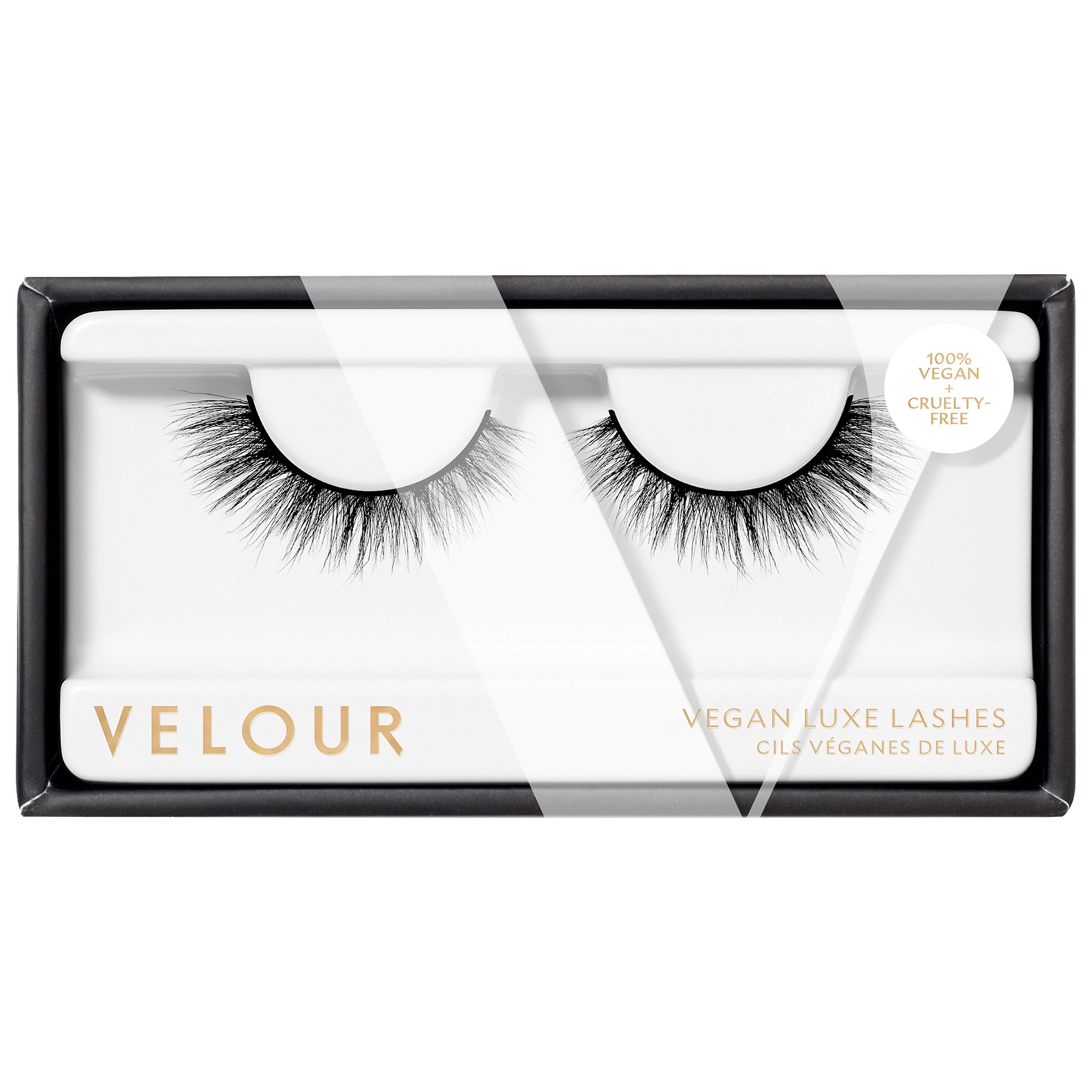 To achieve the perfect fit, measure and trim the lashes to match your natural lash line. Apply a thin layer of Velour Lash Adhesive or use Velour’s Lash & Go – Eyeliner and Lash Adhesive Hybrid along the upper lash line. Wait 30 seconds for the adhesive to become tacky, then place the lashes along your lash line and adjust as necessary. These lashes are virtually weightless and soft to the touch, providing a comfortable and natural-looking fit.
