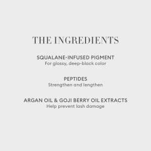 This mascara contains squalane-treated pigment for deep-black color, as well as argan oil and goji berry oil extracts to prevent lash damage. It also features carnauba, sunflower, and candelilla waxes for weightless volume.