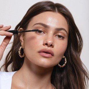 - Place the wand on the base of your upper lashes and stroke upward.