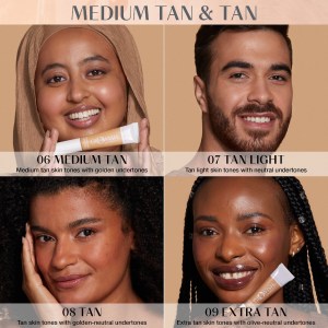 This concealer is available in the shade 09 Extra Tan, specifically designed for extra tan skin tones with olive-neutral undertones. It is fragrance-free and Vegan Society Certified, making it suitable for all skin types.