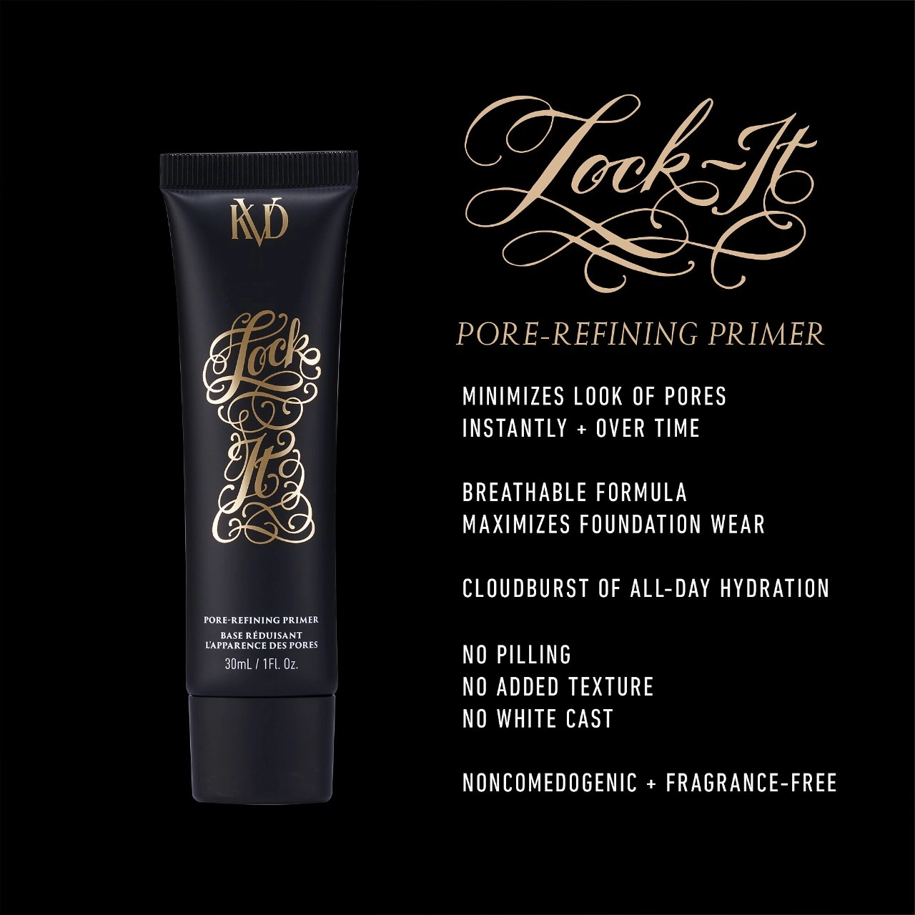 Elevate your makeup routine with the KVD Beauty Lock-It Vegan Pore-Refining Hydrating Primer with Rice Water. Experience the benefits of minimized pores and hydrated skin, all while creating a flawless base for your favorite foundation. Get ready to unlock your beauty potential with this must-have primer.