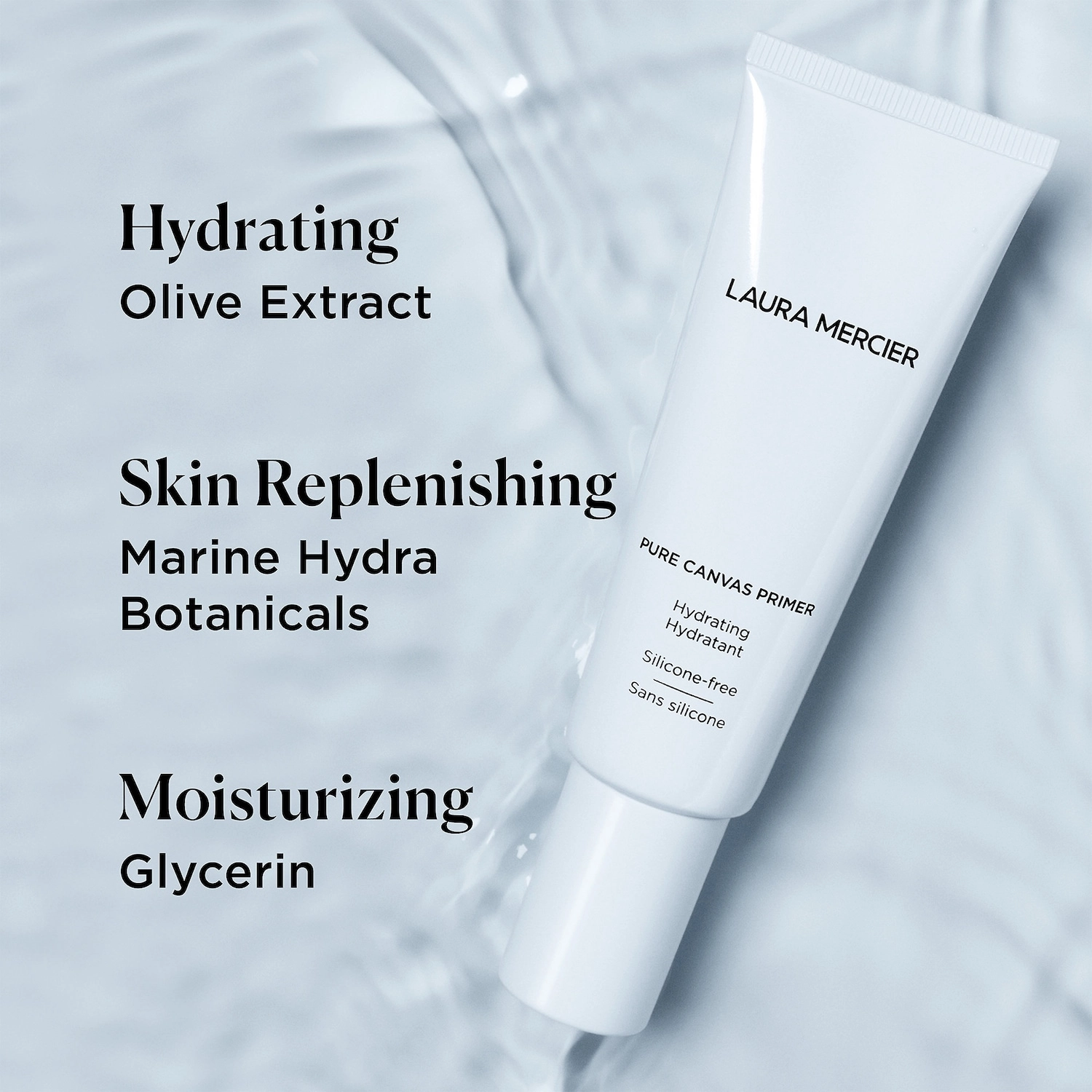 Get long-lasting hydration and a flawless finish with Laura Mercier Pure Canvas Primer. This water-based primer is designed to promote long-term moisture recovery while extending the wear of your makeup. Its cream formula provides a natural finish that lasts all day. Free of sulfates SLS and SLES, parabens, and synthetic fragrances, this primer is formulated with skin-loving ingredients like olive extract, marine hydra botanicals, and glycerin. It not only protects your skin but also keeps it comfortable all day.