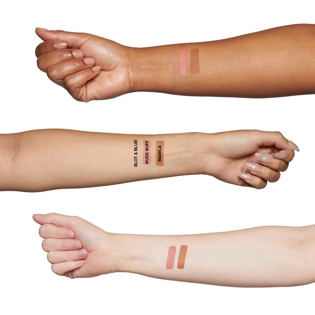 - Blot & Blur Matte Stick: Features a combination of key ingredients such as Dimethicone, Silica, Tocopheryl Acetate, and more.