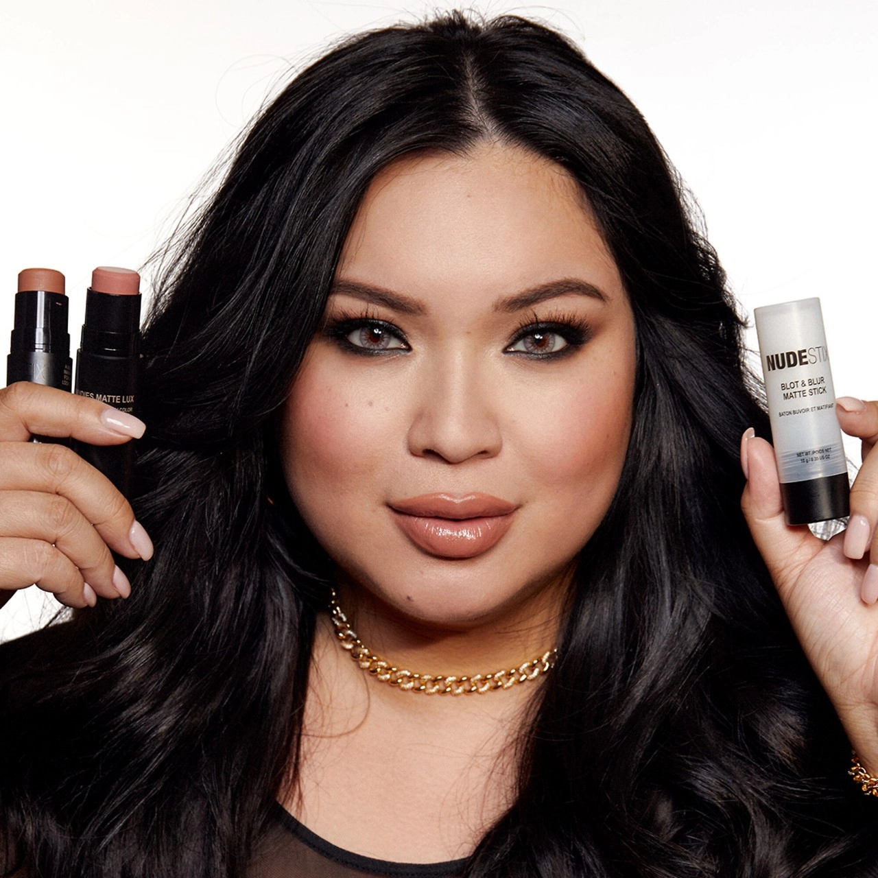 Stephanie Valentine’s glamorous touch shines through this curated kit. Achieve an ultra-soft, matte, sculpted face with the Nudies Matte All Over Face Bronze Color in the custom shade “Manila.” Discover Stephanie’s favorite NUDESTIX products—Nudies Matte Lux All Over Face Blush Color in Nude Buff and Blot & Blur Matte Stick—for a complete glam transformation.
