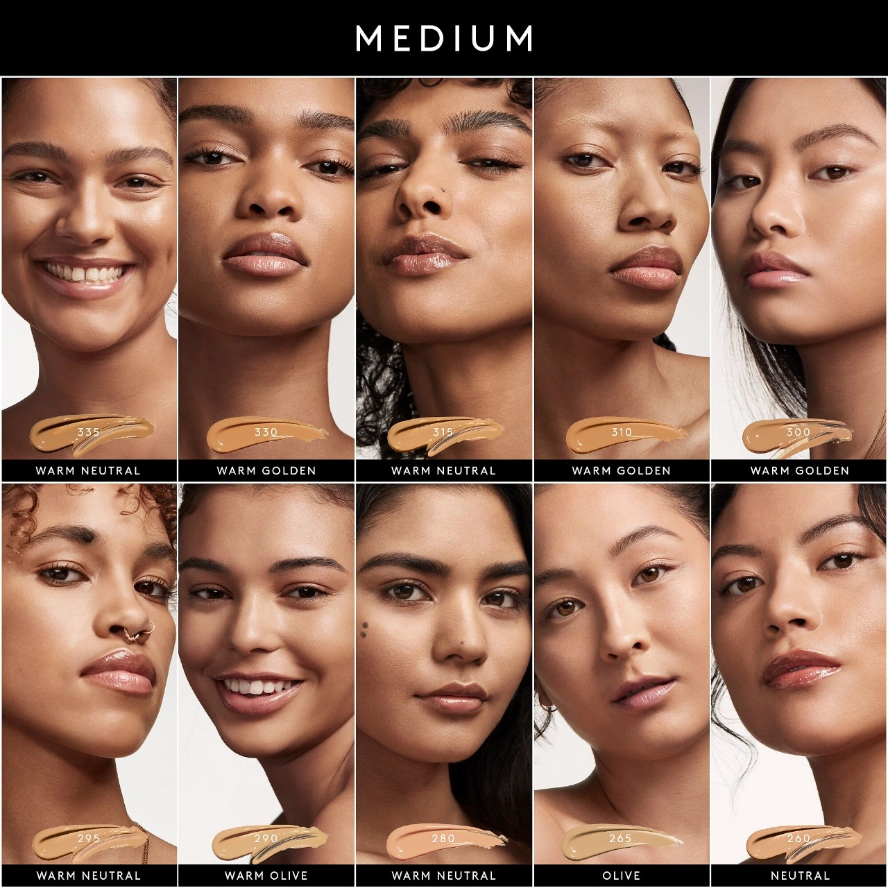 - For medium, customizable coverage, dispense one pump of foundation onto the back of your hand. Use a damp Precision Makeup Sponge 100 (sold separately) to apply to the center of your face or wherever coverage is desired. Press into the skin and blend outward.