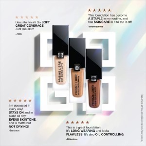 For a natural finish, apply the Givenchy Prisme Libre Skin-Caring Matte Foundation with your fingers. For increased coverage, use a foundation brush or blender. Start with the T-zone and then apply to the cheeks. Blend the foundation from the center out to the edges of your face. Gently pat the foundation to help the active ingredients penetrate deep into the skin.