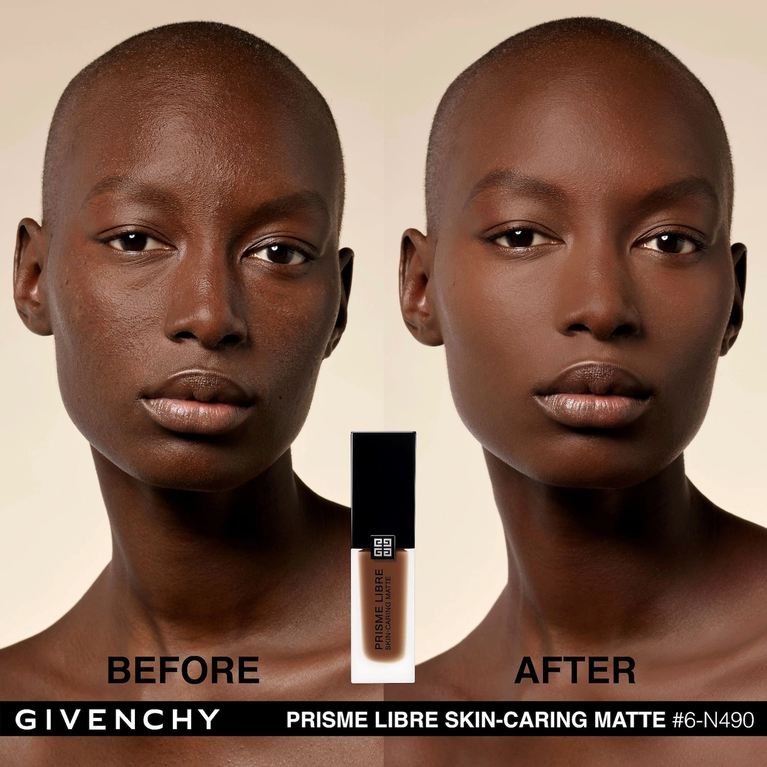 Discover the Givenchy Prisme Libre Skin-Caring Matte Foundation in Color 6-N490. This lightweight foundation is designed to provide a long-lasting matte finish while addressing imperfections and blurring the skin for up to 24 hours. Infused with skincare ingredients, it hydrates and mattifies, leaving your skin looking flawless and natural.