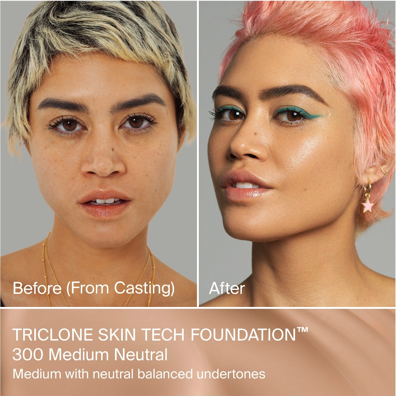 Experience the power of HAUS LABS BY LADY GAGA Triclone Skin Tech Medium Coverage Foundation with Fermented Arnica. This weightless foundation is formulated with fermented arnica to visibly reduce redness and irritation, while protecting your skin from environmental stress. With its medium coverage, it delivers a natural, luminous finish that lasts all day without slipping or caking.