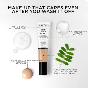 Discover the power of Lancôme SKIN FEELS GOOD Tinted Moisturizer with SPF 23. This lightweight and hydrating tinted moisturizer is designed for medium skin tones, specifically those with warm/yellow undertones. With its radiant finish and cream formula, it provides a natural, dewy glow that enhances your skin’s appearance.