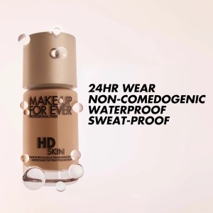 The MAKE UP FOR EVER HD Skin Undetectable Longwear Foundation is comfortable and easy to apply. It flexes with the skin, preventing caking and settling into lines. It is non-comedogenic, waterproof, and sweatproof. The bottle is recyclable and made from 40 percent recycled glass, with a FSC carton and bio-sourced cap.