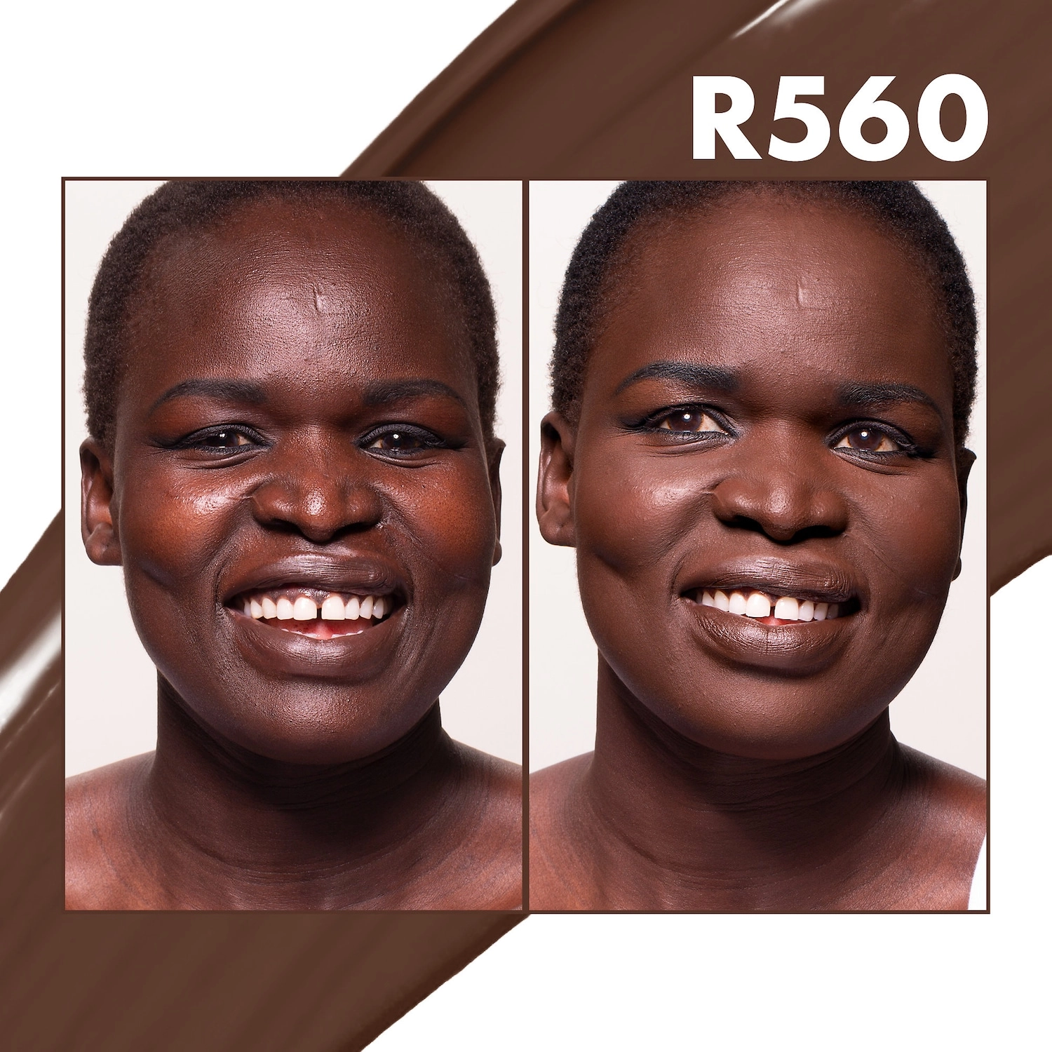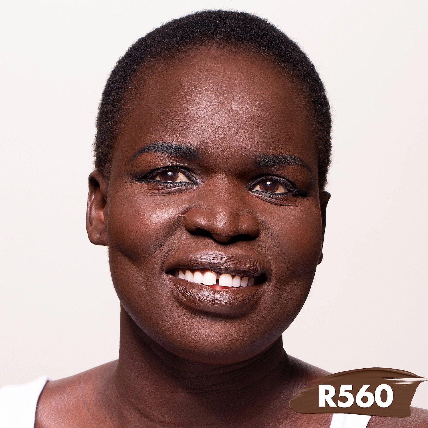 Introducing the MAKE UP FOR EVER Matte Velvet Skin Full Coverage Foundation in the shade R560 Chocolate. This waterproof foundation is designed to provide a velvety-matte finish and up to 24 hours of wear. With its full coverage formula, it is perfect for those with normal-to-oily skin types.