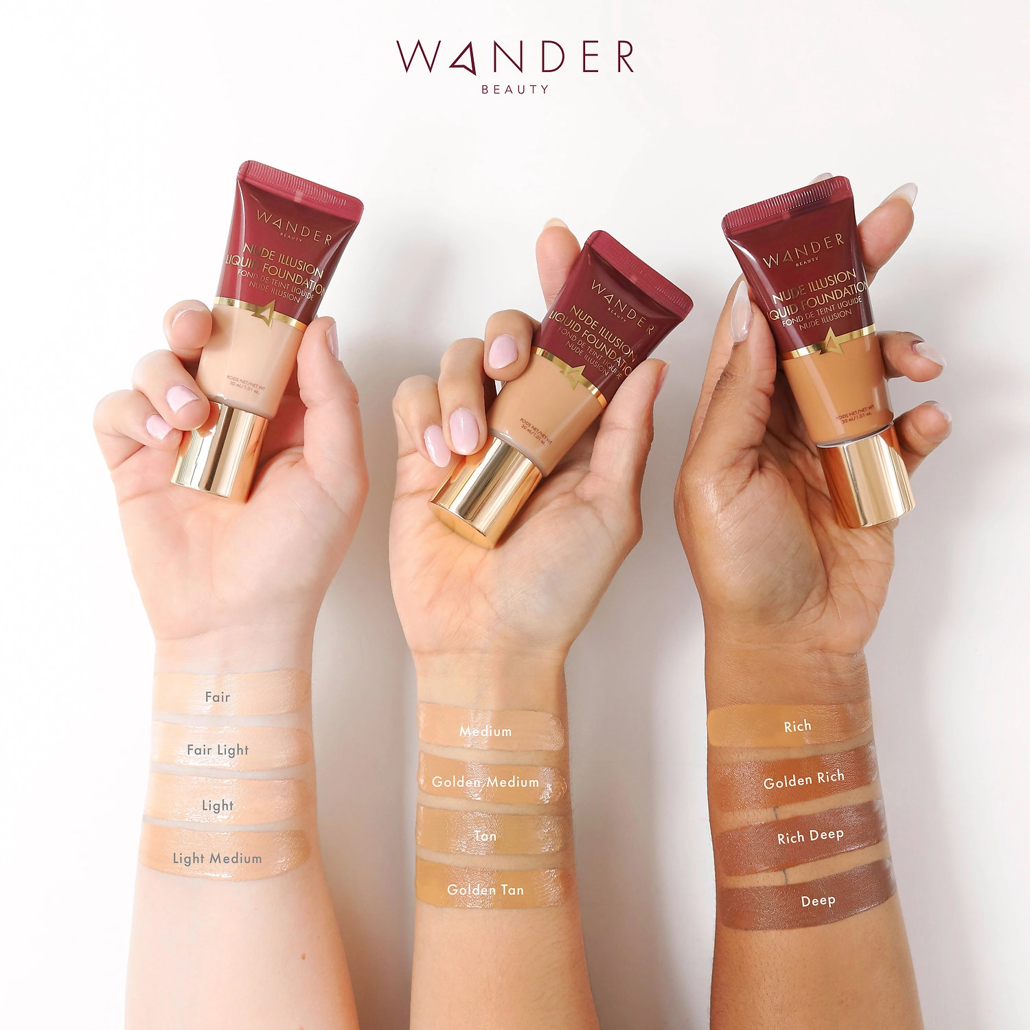 Experience the magic of Wander Beauty Nude Illusion Liquid Foundation and achieve a flawless complexion with ease. Say goodbye to imperfections and hello to a natural, radiant finish. Order yours today and experience the beauty of Wander Beauty.